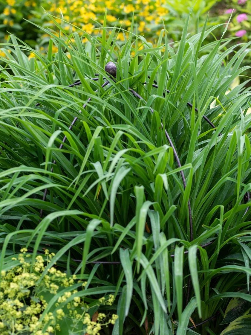 - Sculptural plant support keep large perennials in bounds